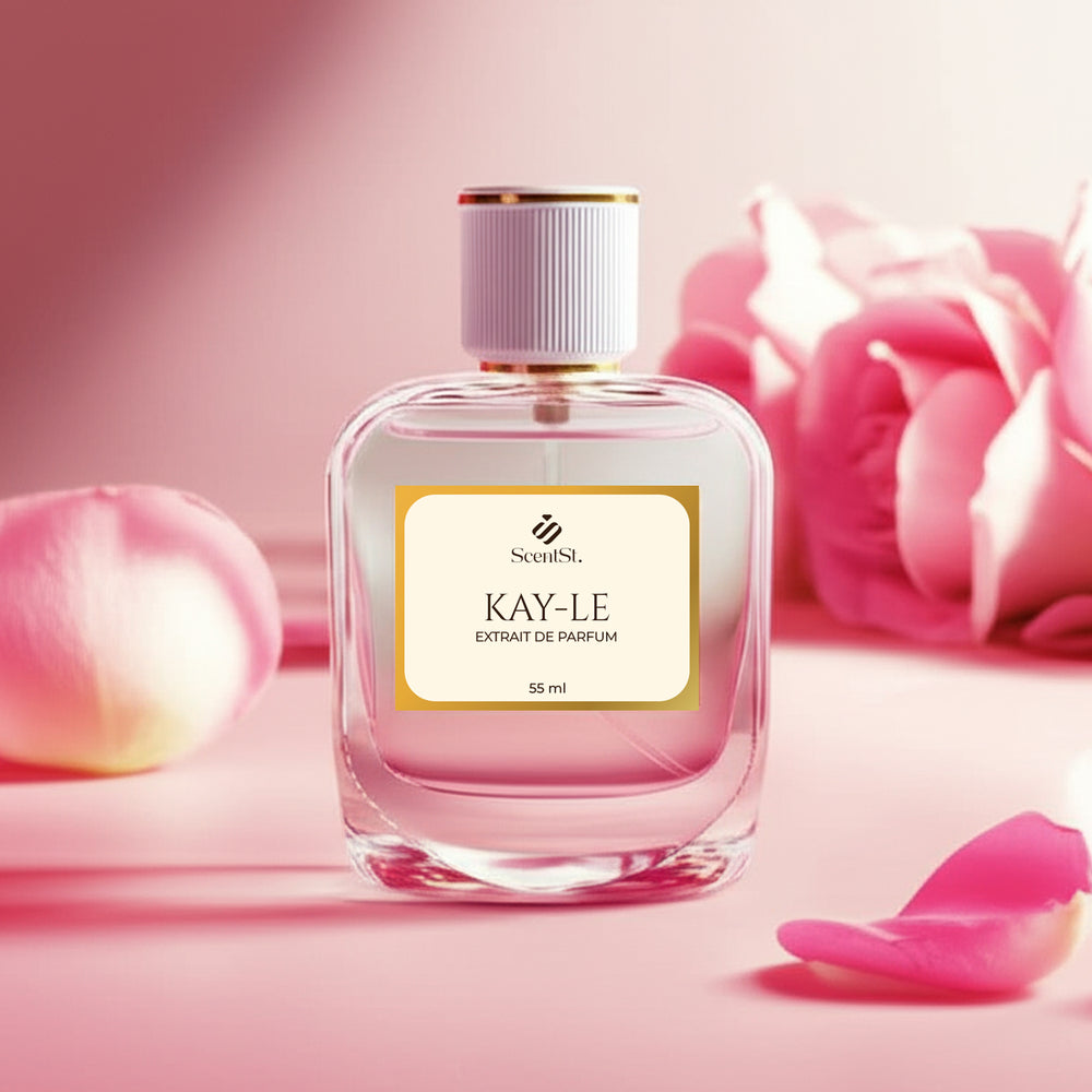 Kay Le inspired by Kayali's ELIXIR | 11, is a seductive and enticing scent. It begins with delicate rose petals and a sweet burst of red apple. Rich rose centifolia and uplifting jasmine sambac reveal the heart. Lastly, the base creates a lasting and memorable trail by grounding the scent with warm Indonesian patchouli, smooth amber, and a hint of vanilla.