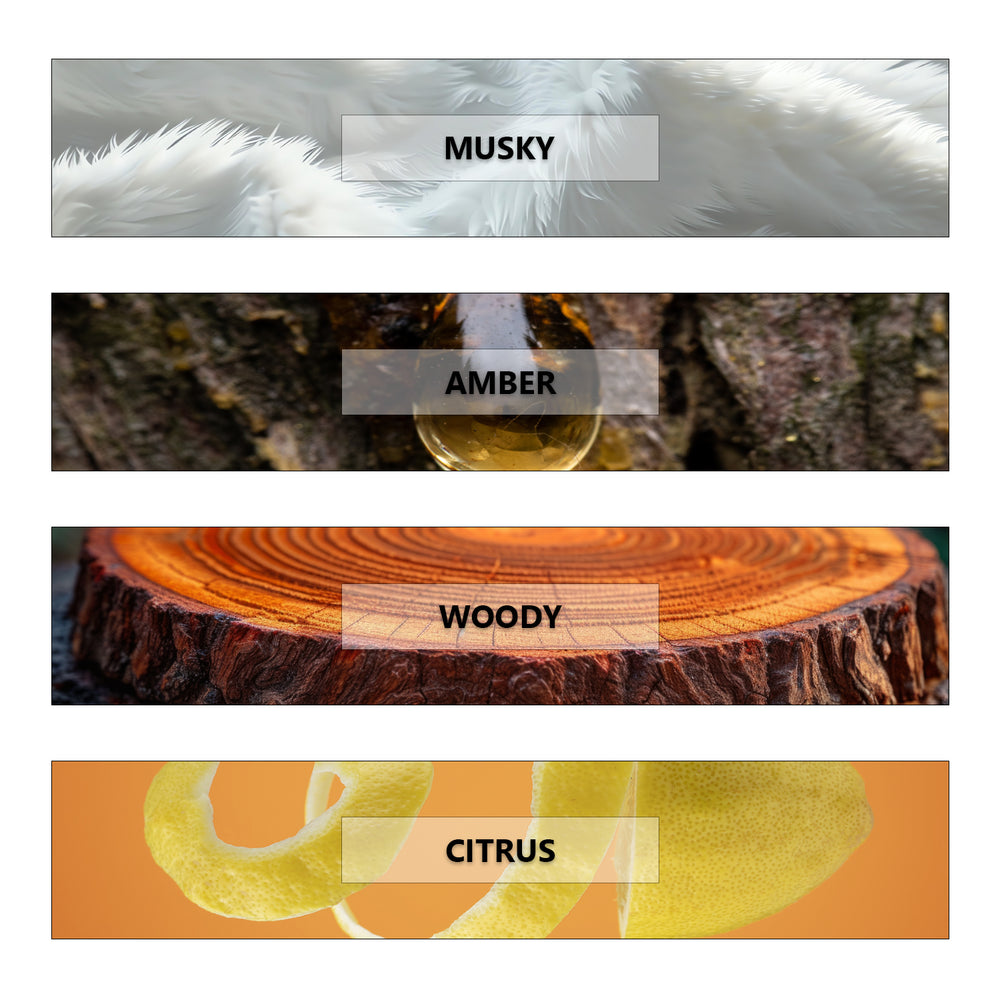 Fragrance Profile: Musky - Amber - Woody - Powdery - Citrus